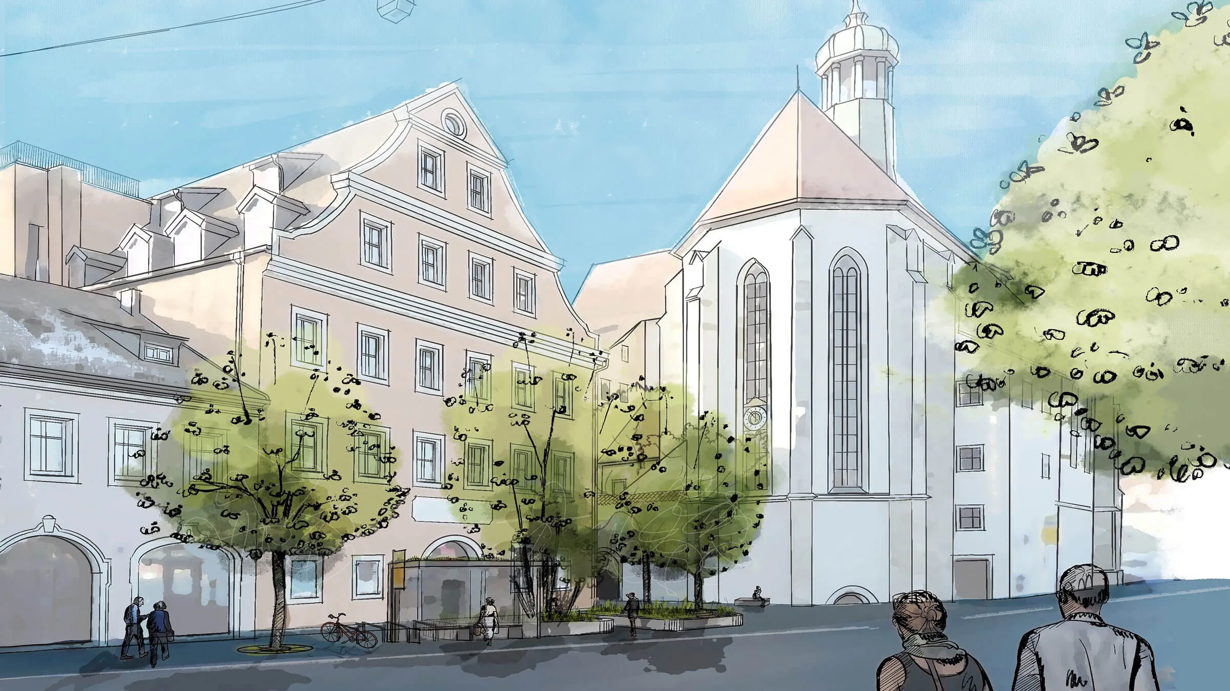 Wie könnte sich die Regensburger Altstadt weiterentwickeln? Vorher-Nachher-Bilder von wichtigen Straßen und Plätzen im Herzen der Altstadt geben einen Einblick in geplante Veränderungen und Projekte im Rahmen der Verkehrsberuhigung Altstadt. Bitte wählen Sie ein Beispiel: